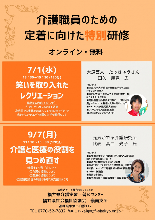 令和8年度 介護職員のための定着に向けた特別研修のご案内